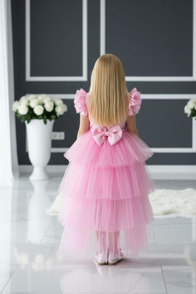 - Elsa pembe katkat kuyruklu renk tarz çocuk abiye, şıklığı ve rahatlığı bir arada sunar.