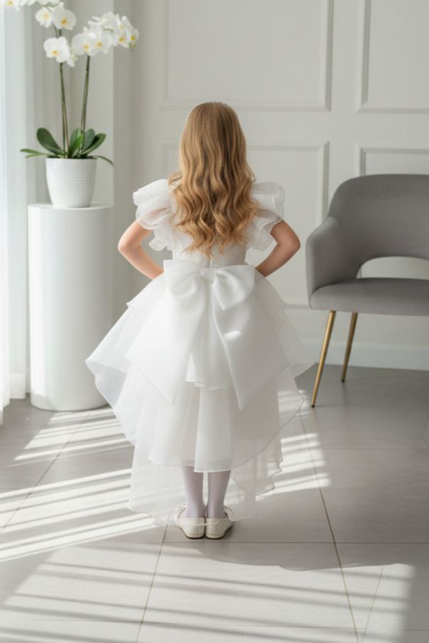 - Tül materyaliyle hafif ve akıcı bir siluet çizer