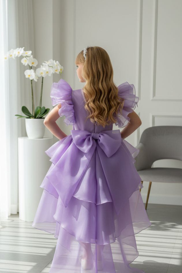 - Tül materyaliyle hafif ve akıcı bir siluet çizer
