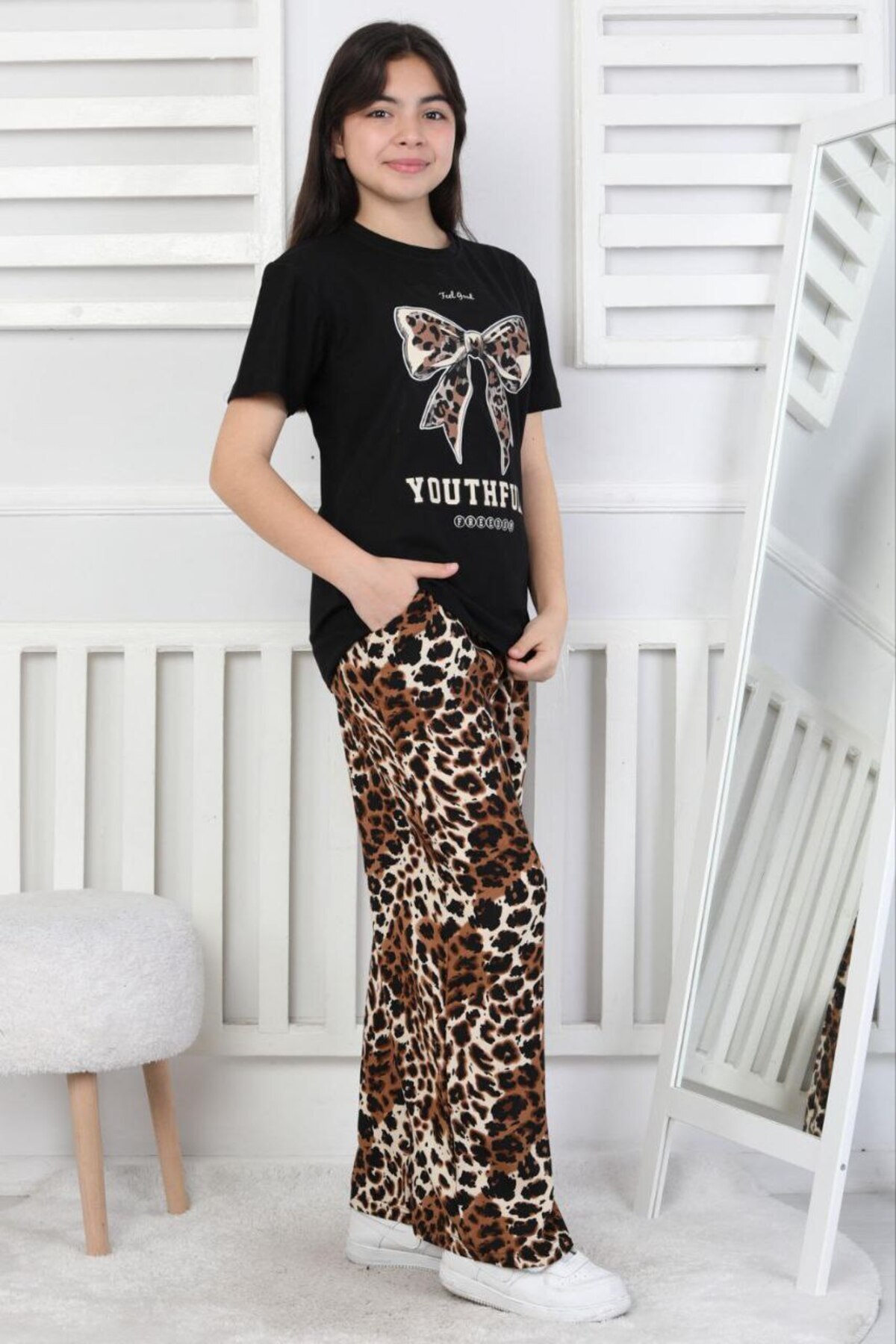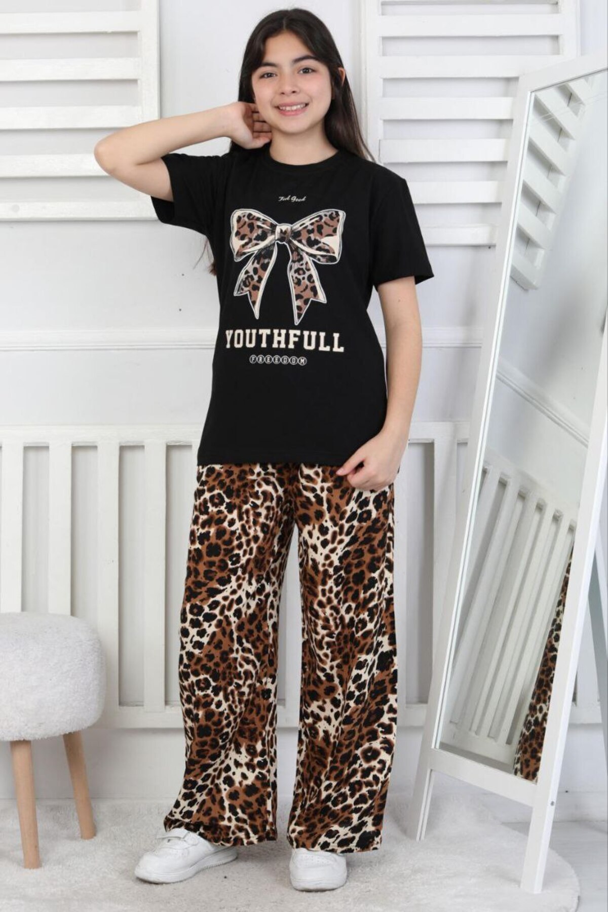 - Leopar deseniyle dikkat çeken bu çocuk takımı, hem şıklığı hem de rahatlığı bir arada sunar.